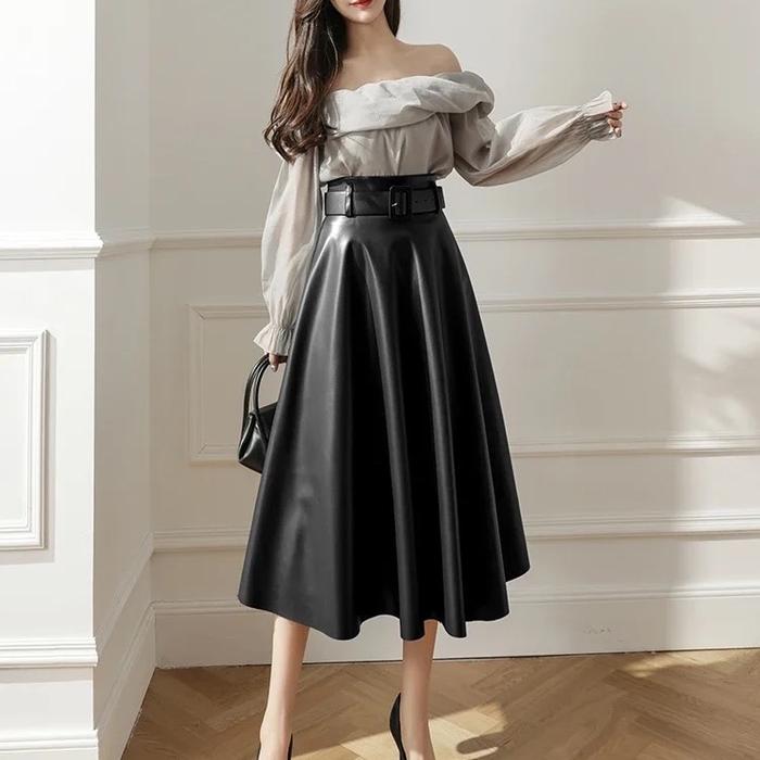 Rok Wanita/Baju Kemeja Wanita Riseleather.id Rok Kulit Wanita Stretch Korean Fashion Highwaist