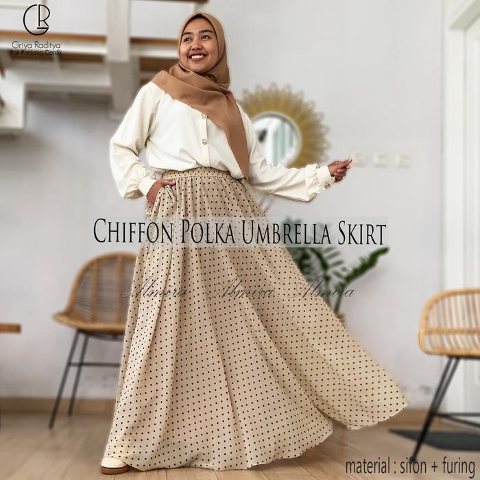 Rok Wanita/Baju Kemeja Wanita Rok Polkadot Panjang Payung Lebar Sifon Chiffon Polka Umbrella Skirt