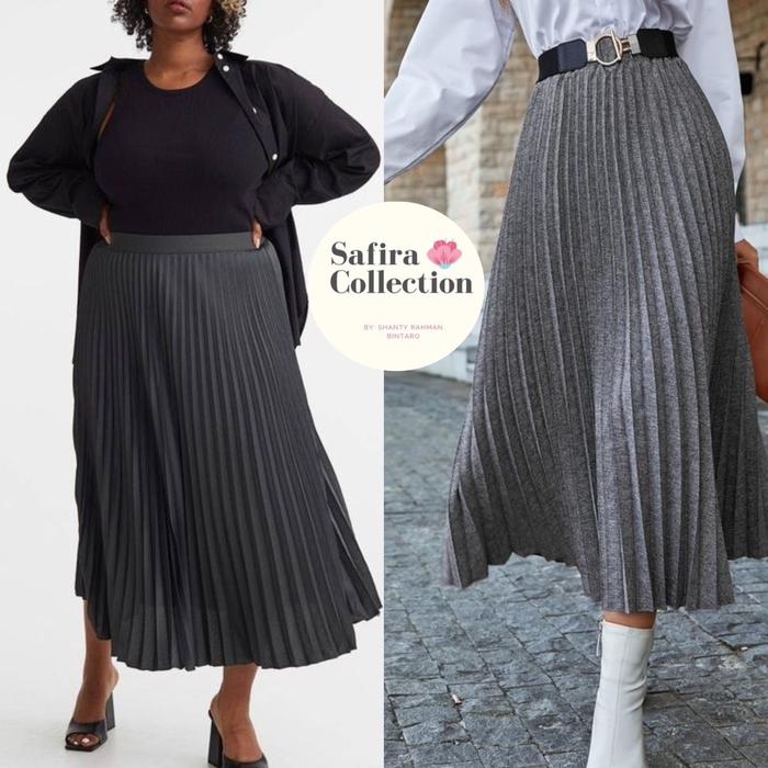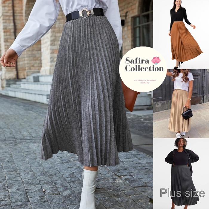 Rok Wanita/Baju Kemeja Wanita Rok Hyuna Plisket Semi Wool Panjang Ukuran Jumbo Pleated Skirt