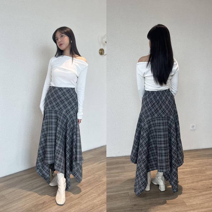 Rok Wanita/Baju Kemeja Wanita Bling It On - Tiana Plaid Skirt - Handkerchief RUFFLE PLAID LONG SKIRT