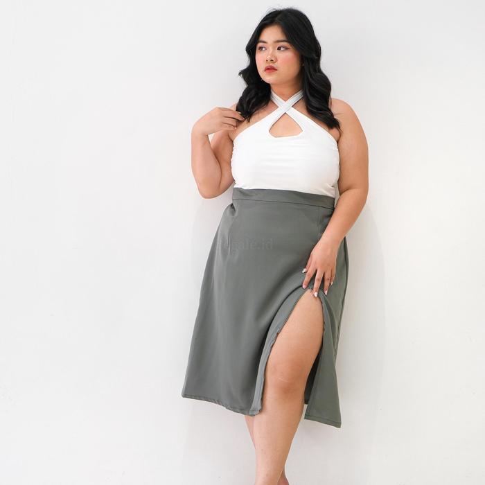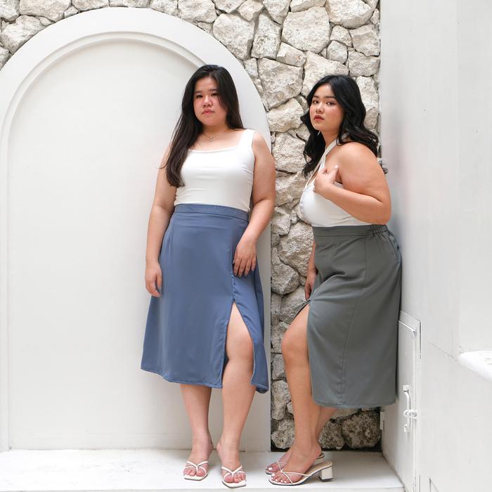Rok Wanita/Baju Kemeja Wanita EGALE.ID - Slit Zip Skirt Plus Size Jumbo Size Big Size