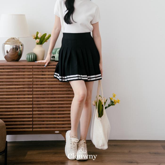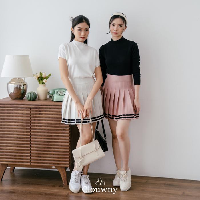 Rok Wanita/Baju Kemeja Wanita Clouwny Stripes Tennis Skirt Rok Wanita Korea Modern Korean Premium