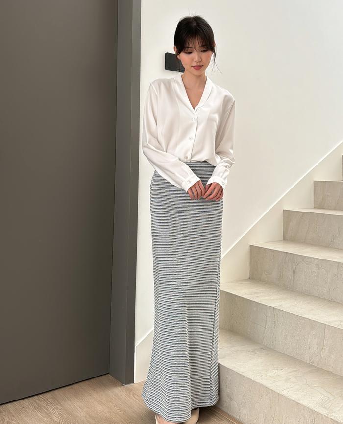 Rok Wanita/Baju Kemeja Wanita Kadaka B-0207 Maxi Knit Tweed Skirt Rok Panjang Maxi Knit Wanita