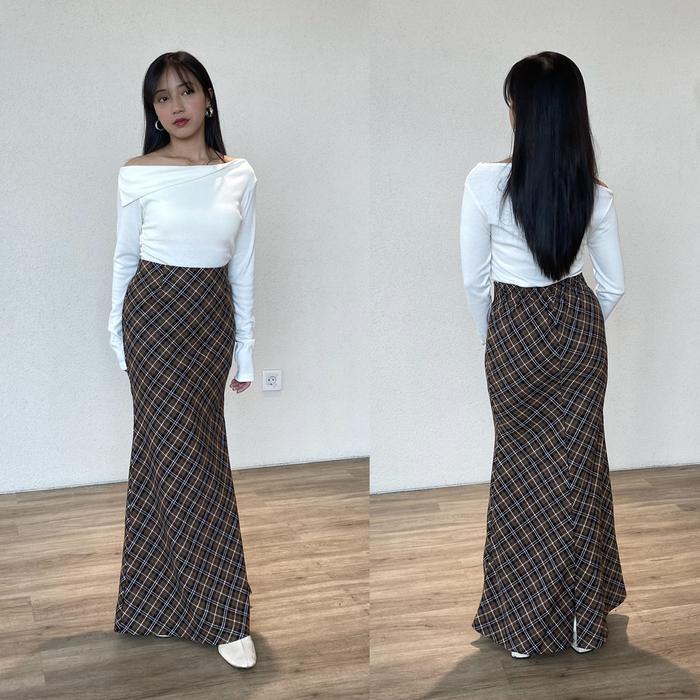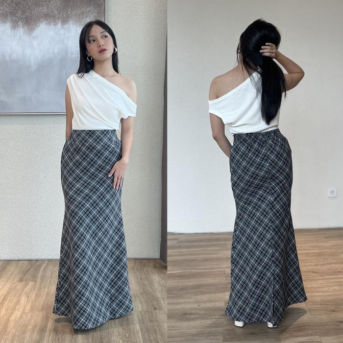 Rok Wanita/Baju Kemeja Wanita Bling It On - Thalia Mermaid Skirt - MERMAID PLAID LONG SKIRT - Office