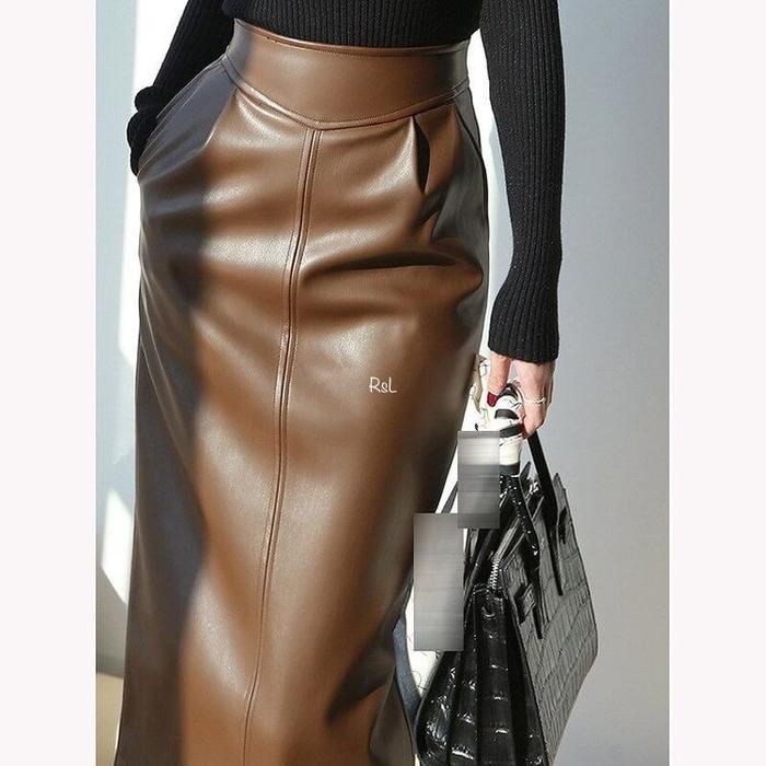 Rok Wanita/Baju Kemeja Wanita Riseleather Span Kulit Wanita Vintage Rok HighWaist Straight Cut Skirt