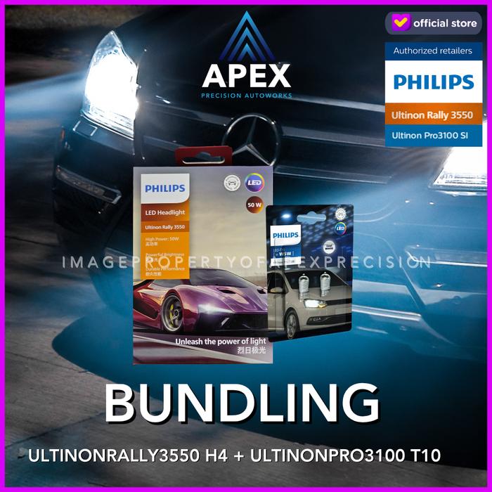 LAMPU MOBIL BUNDLING PHILIPS ULTINON RALLY 3550 H4 & PRO3100 T10