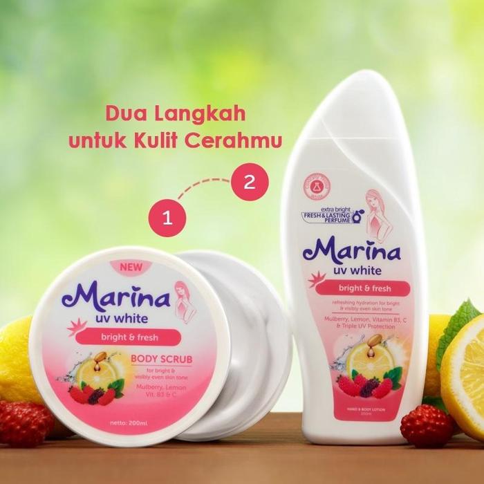 Marina HandBody 185 ml Body Scrub 200 ml UV White | Healthy & Glow | Bright & Fresh Pemutihan - HANDBODY 185ML BIRU