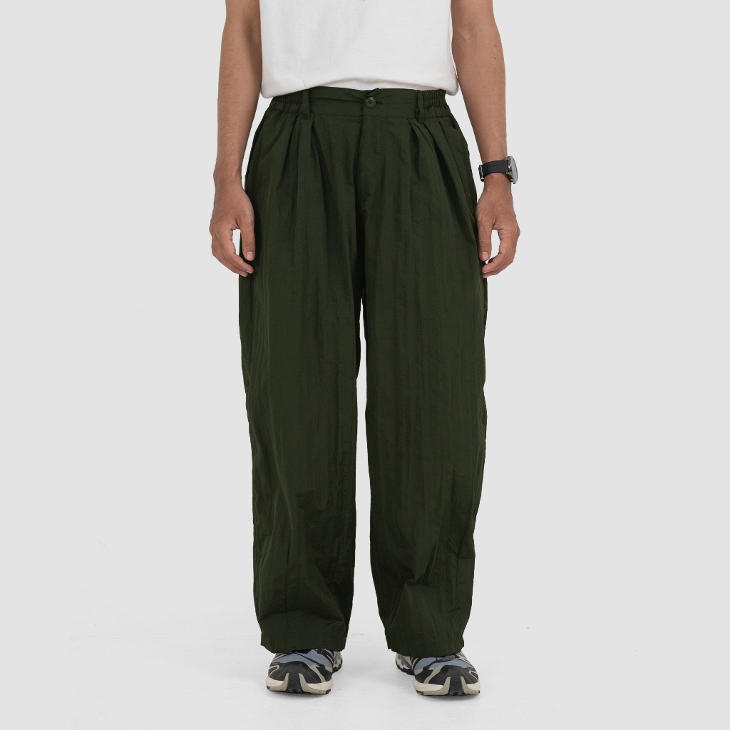 Fairgoods Celana Panjang Nylon Crinkle Baggy Baloon Pants Mizura Olive