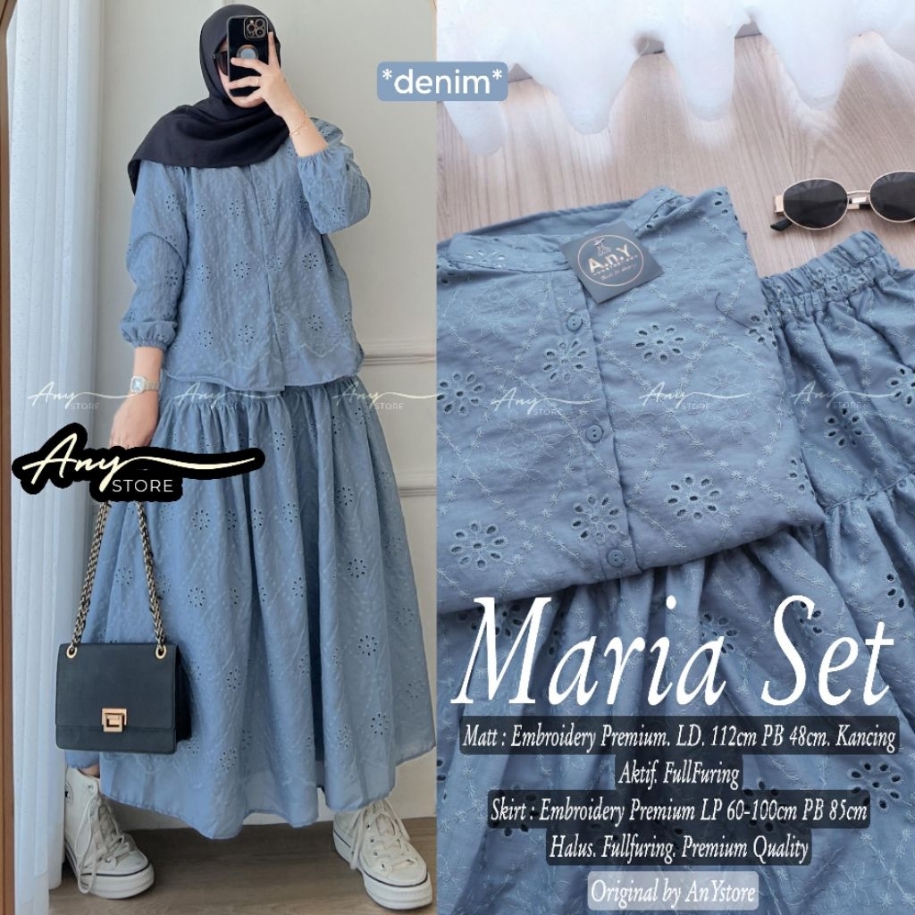 maria setelan tunik dan rok by A.N.Y long tunic jumbo ld 120 CM rok panjang plisket long tunik floral midi dress cotton