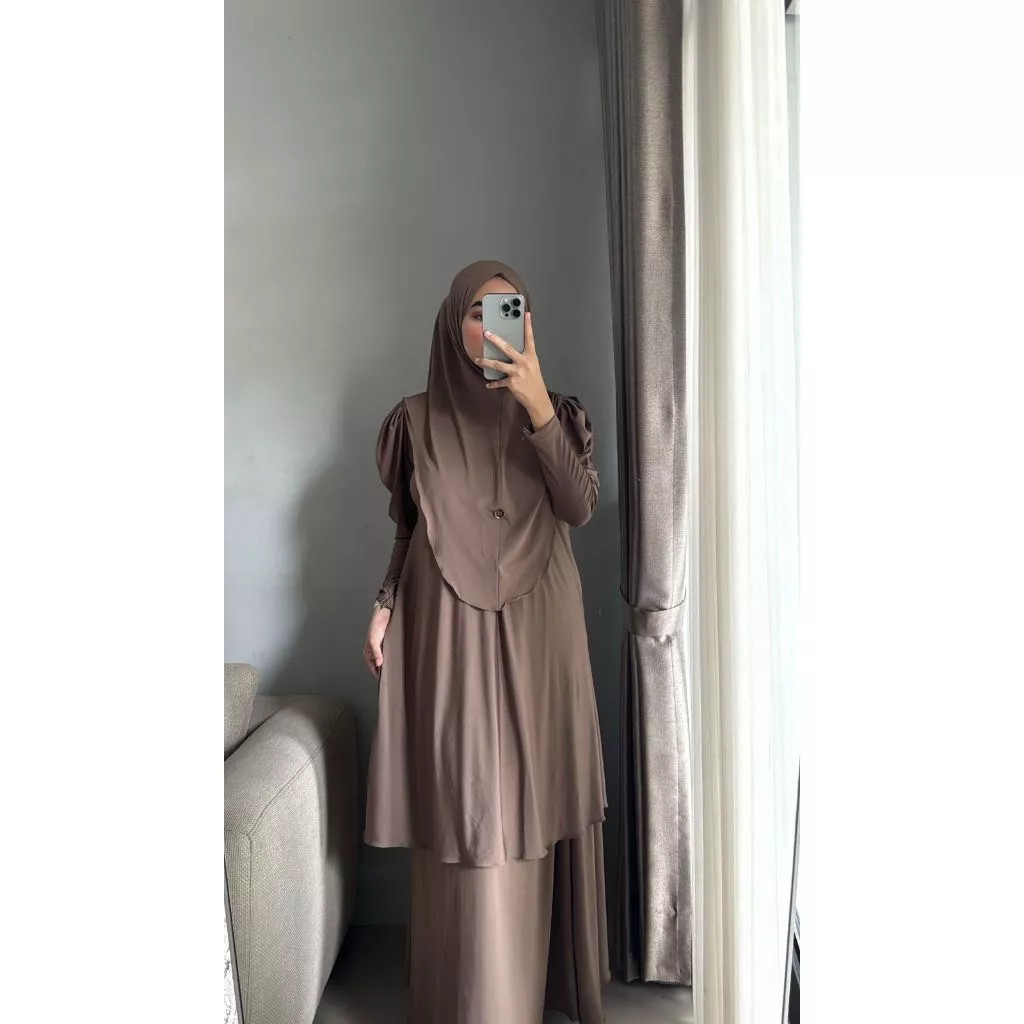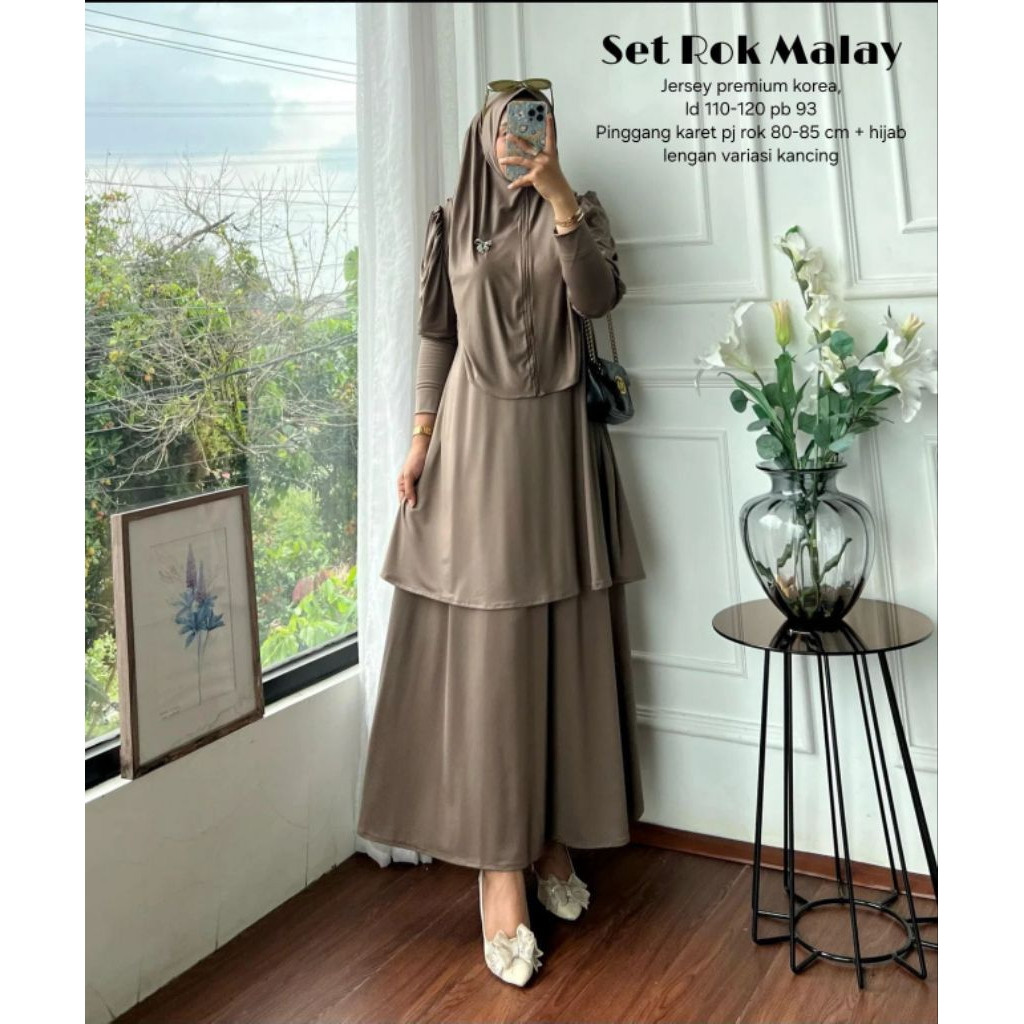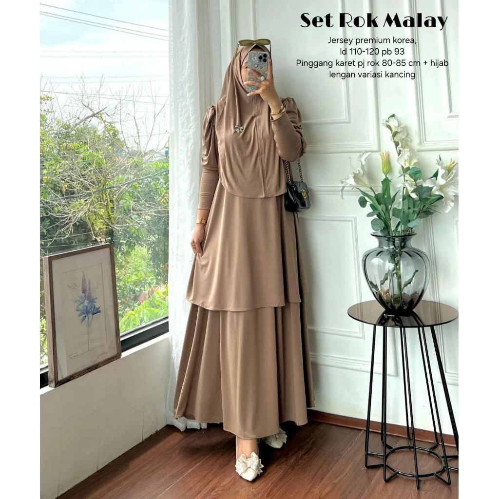 (Bisa ) Set Rok Hijab Malay Bahan Jersey Premium Setelan Tunik Rok Wanita Basic