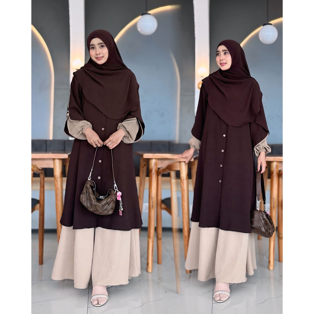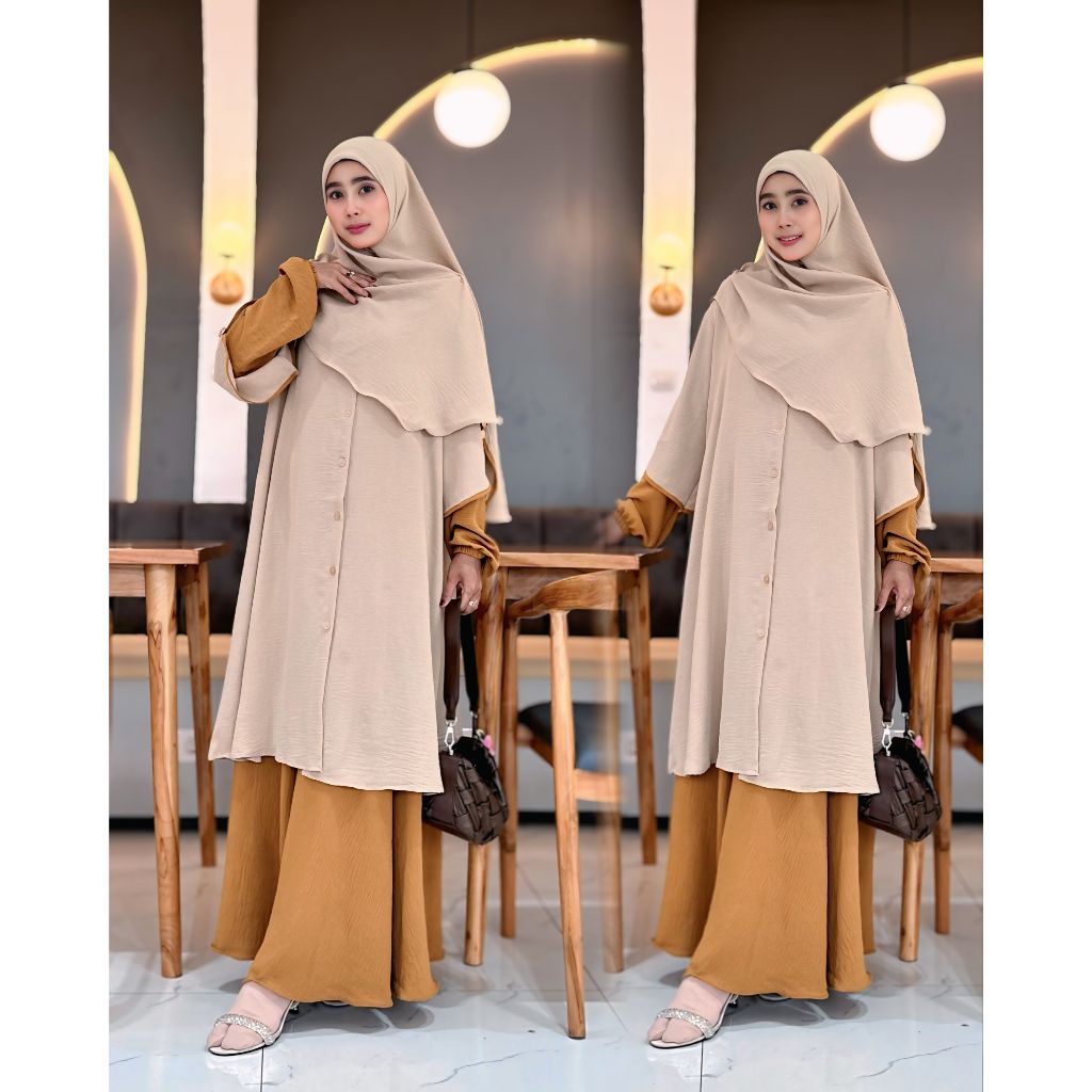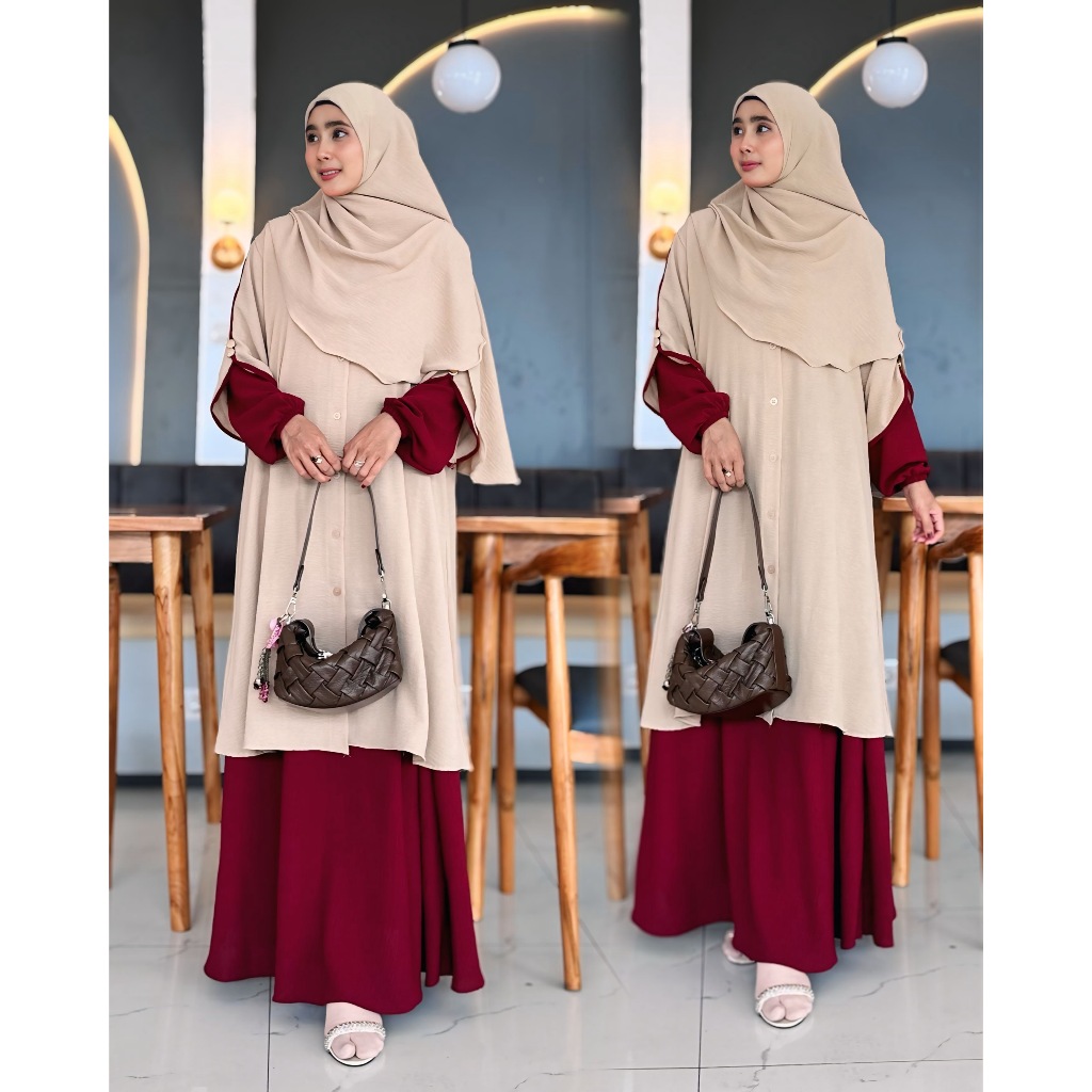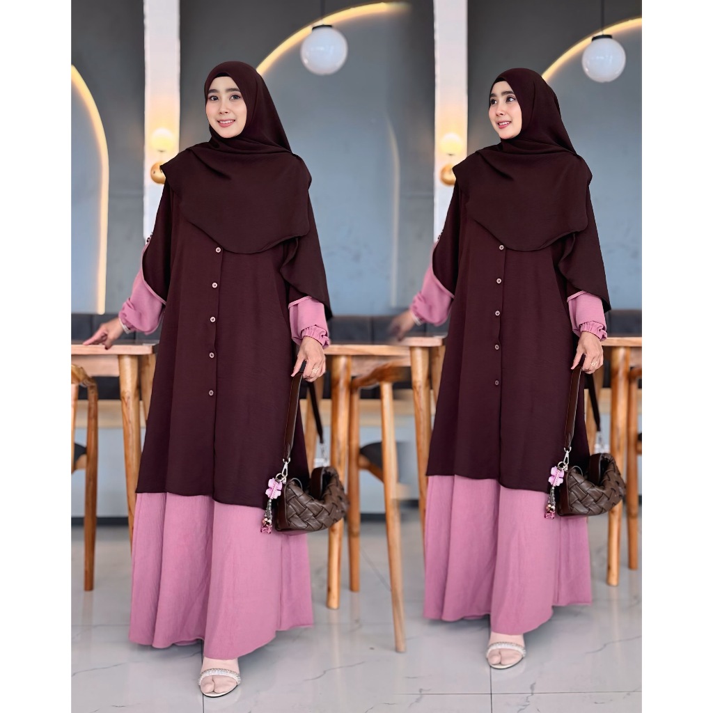 CM - One Set Rok Tunik Syar’i Muslim Set Pashmina Oval Setelan Baju Gamis Terbaru