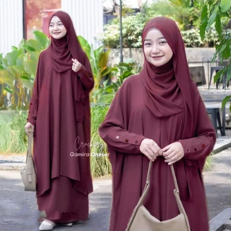 ONE SET SETELAN ROK TUNIK ABAYA REMAJA KEKINIAN TERBARU GAMIS SYAR'I WANITA DEWASA DRESS KEKINIAN