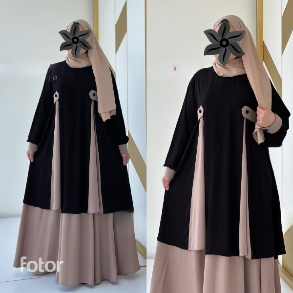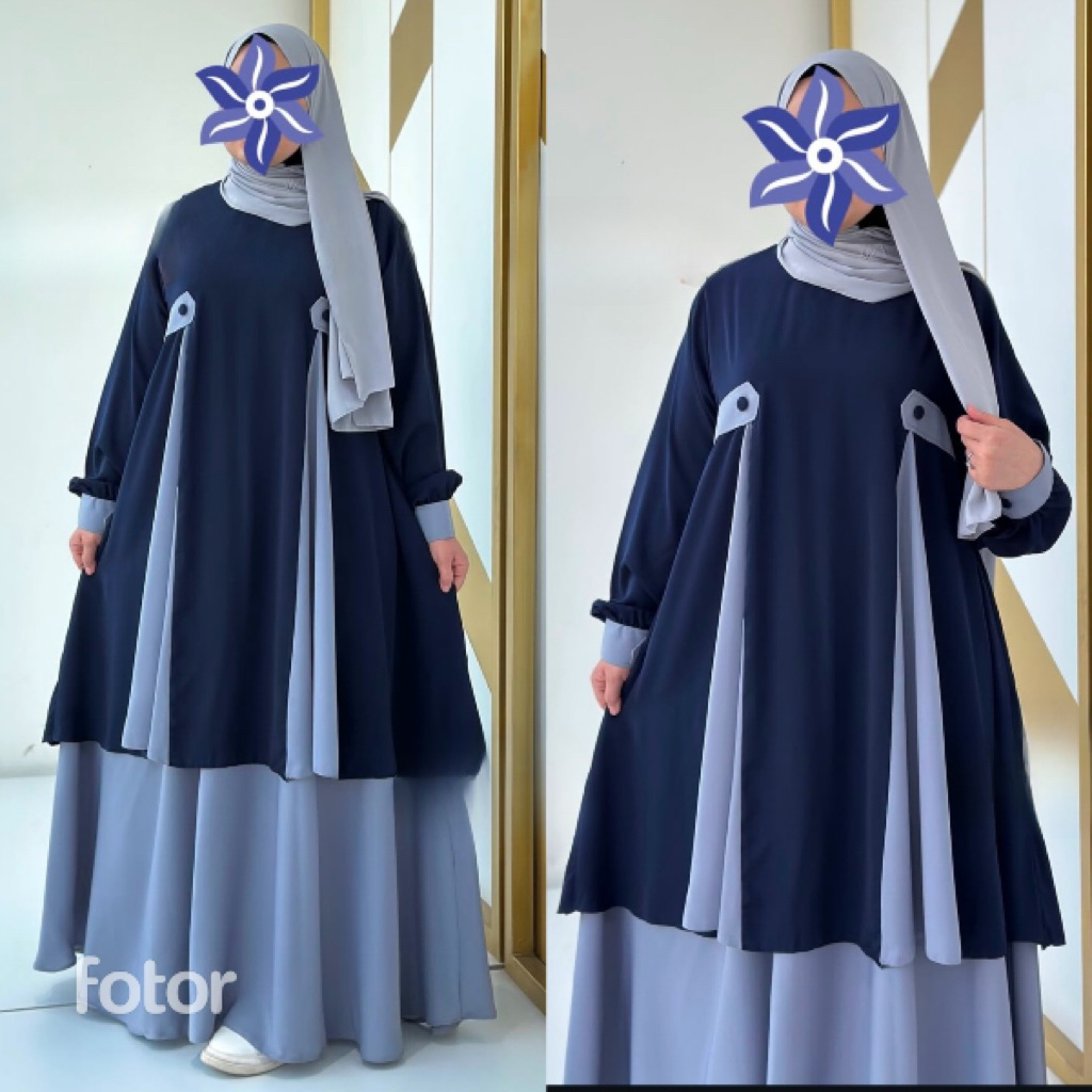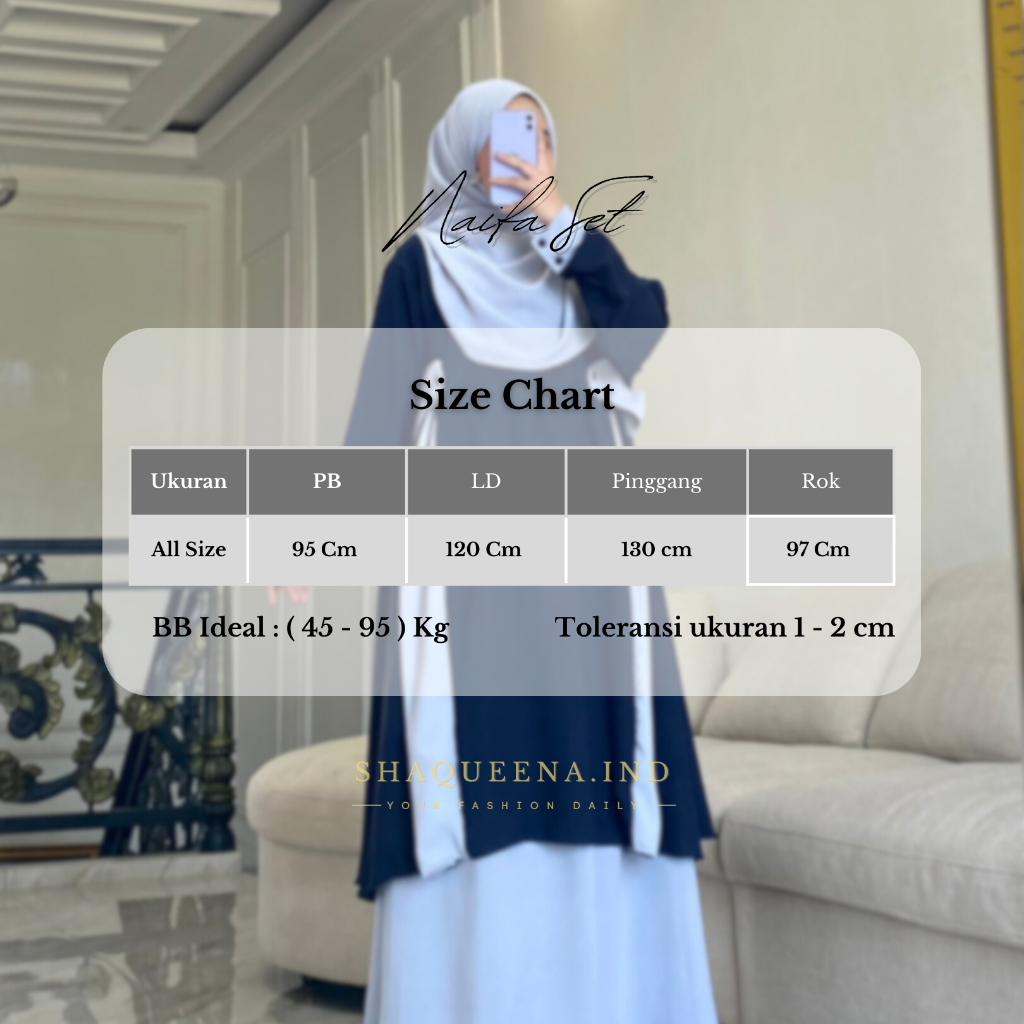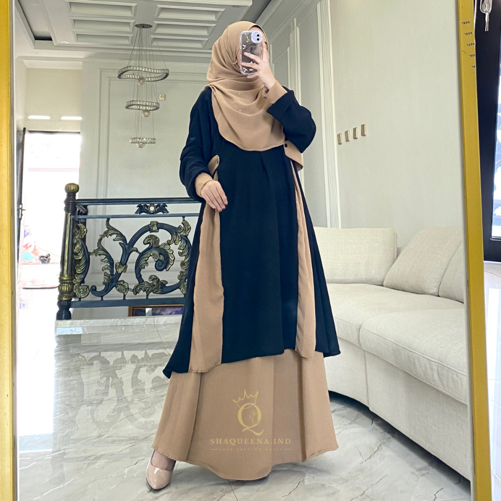 Naifa Setelan Tunik Jumbo Rok Mayung Oneset Rok Malay Syar’i Pashmina Oval - Shaqueena.ind