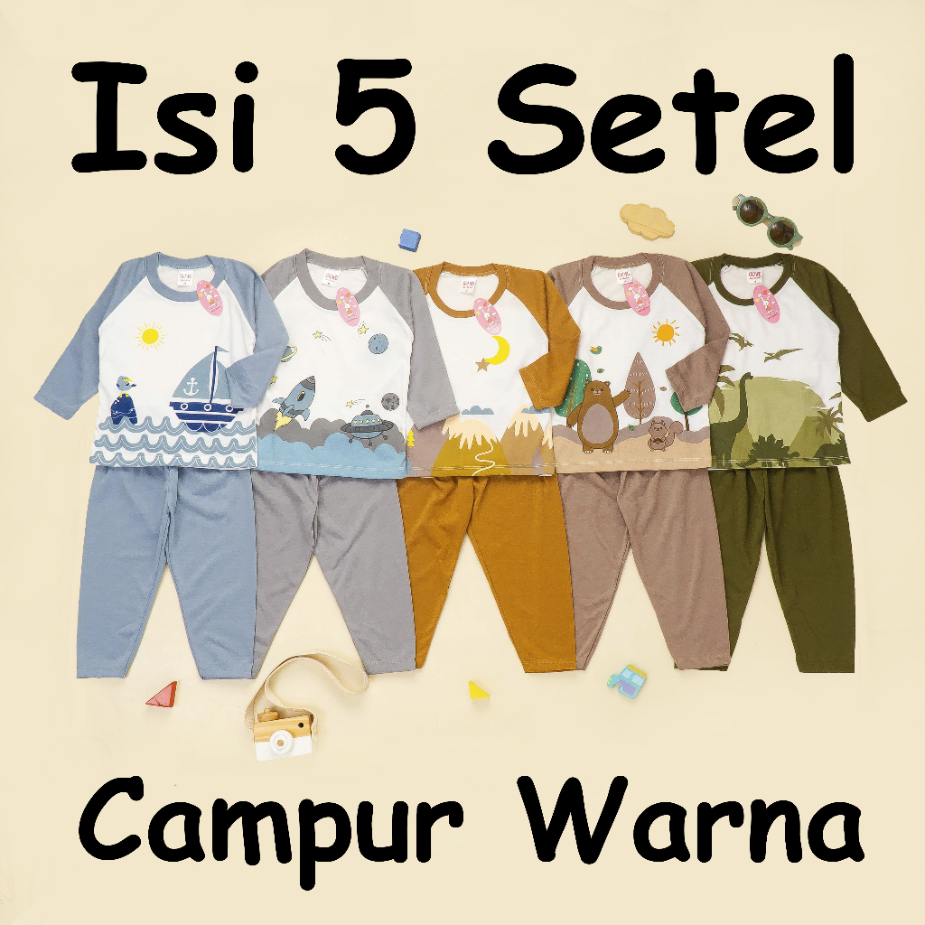 Baju Anak (ISI 5 SETEL) Setelan Anak & Bayi Laki Laki Raglan Tale Story Panjang Earthtone Baju Anak Laki Laki Baju Bayi