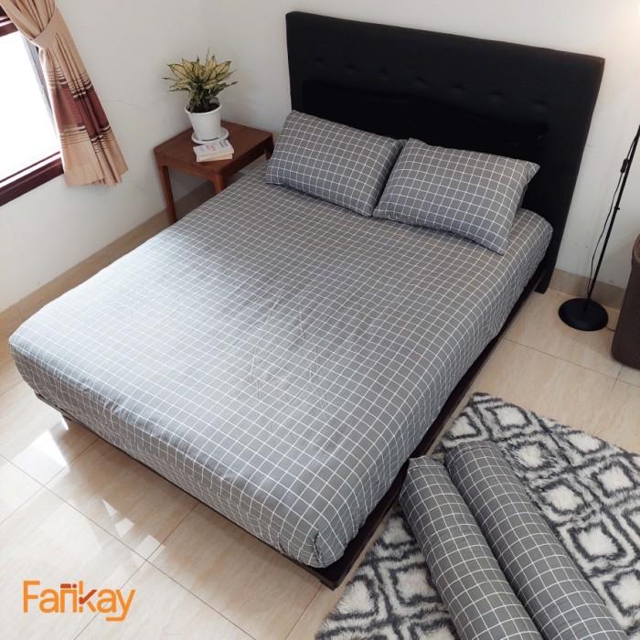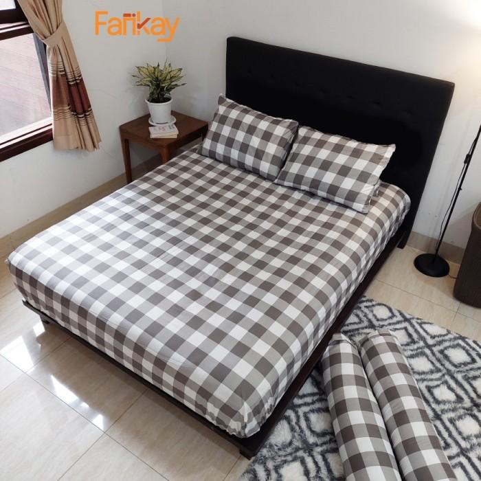 SPREI 120200 160X200 180X200 200X200 FANKAY KOTAK GARIS ABU 120X200 X 20CM