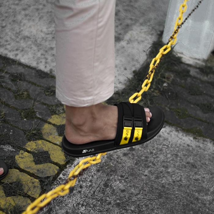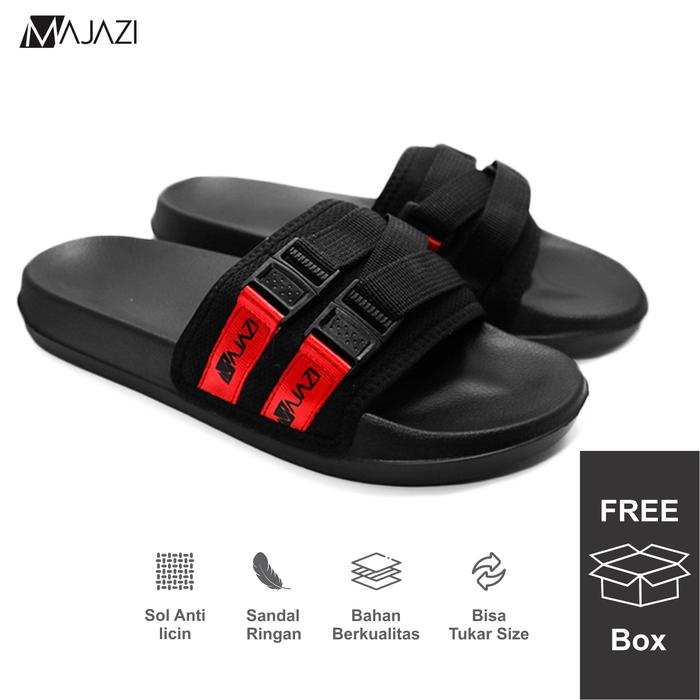 SANDAL SLIDE CASUAL SELOP UNISEX MAJAZI SLIP ON DORTMUND BLACK RED BLACK RED 39