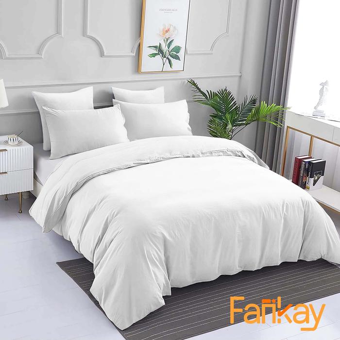 BED COVER SET SPREI POLOS PUTIH UKURAN LENGKAP FANKAY BEDCOVER SPREI SARUNG BANTAL SARUNG GULING KAIN 20 100X200