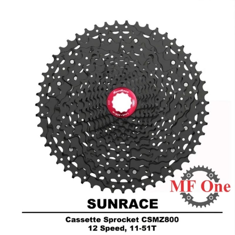 Sprocket SunRace 12 Speed 11 - 51T untuk Freehub HG Spline Hyperglade CSMZ800 non Microspline