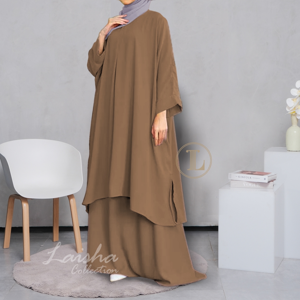 (Bisa ) Abaya turkey Tunik Malaya One Set rok + Atasan gamis wanita terbaru Crinkle Air flow / Kaftan Tunik Setelan umro