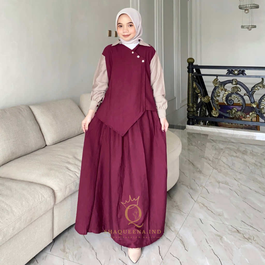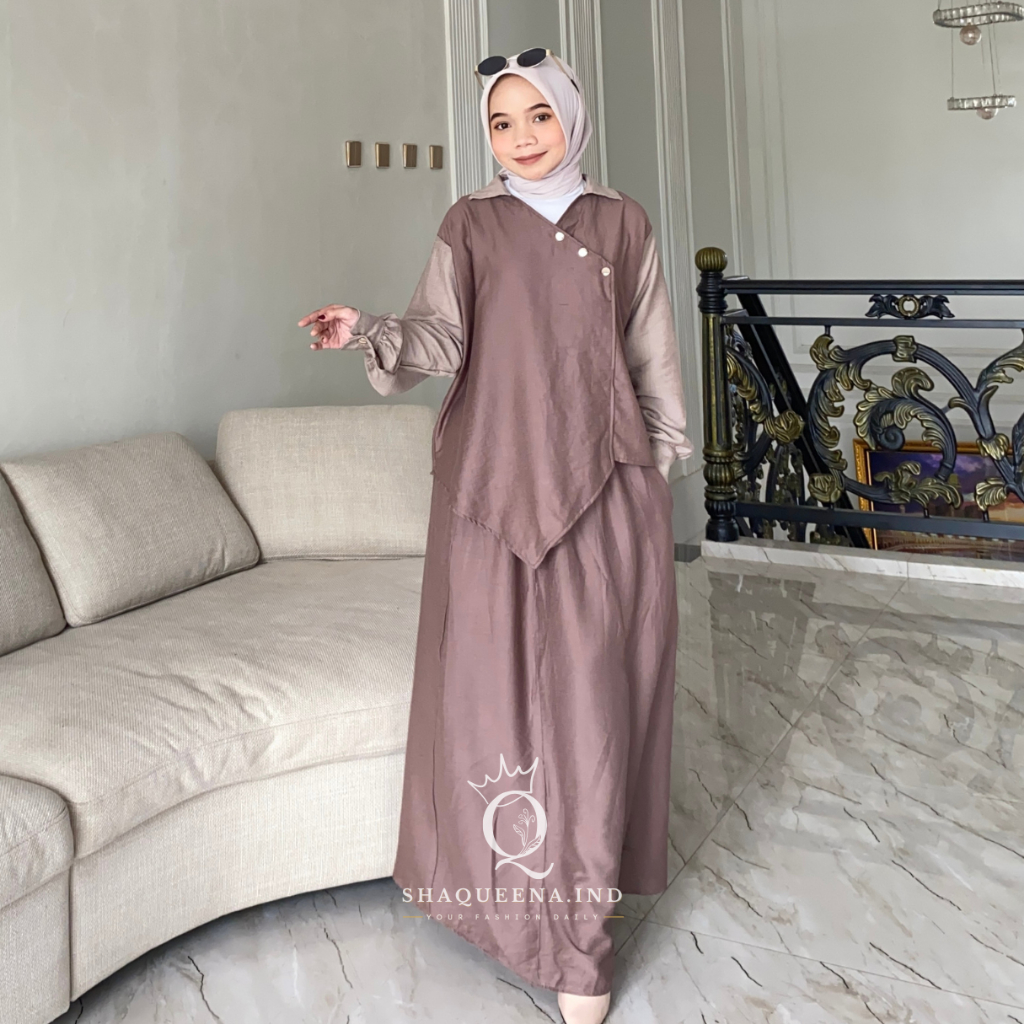 Naomi One Set Wanita Kekinian Setelan Rok dan Tunik Linen Muslim Hijab Adem Premium - SHAQUEENA.IND