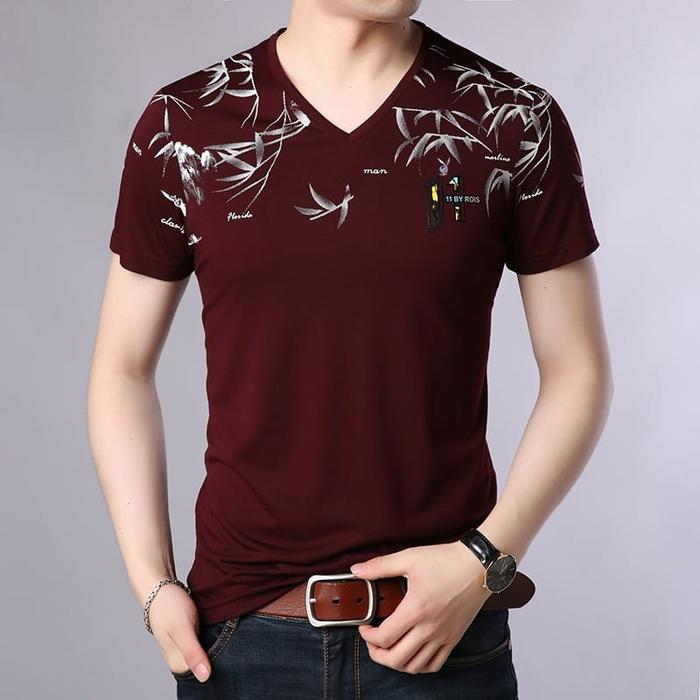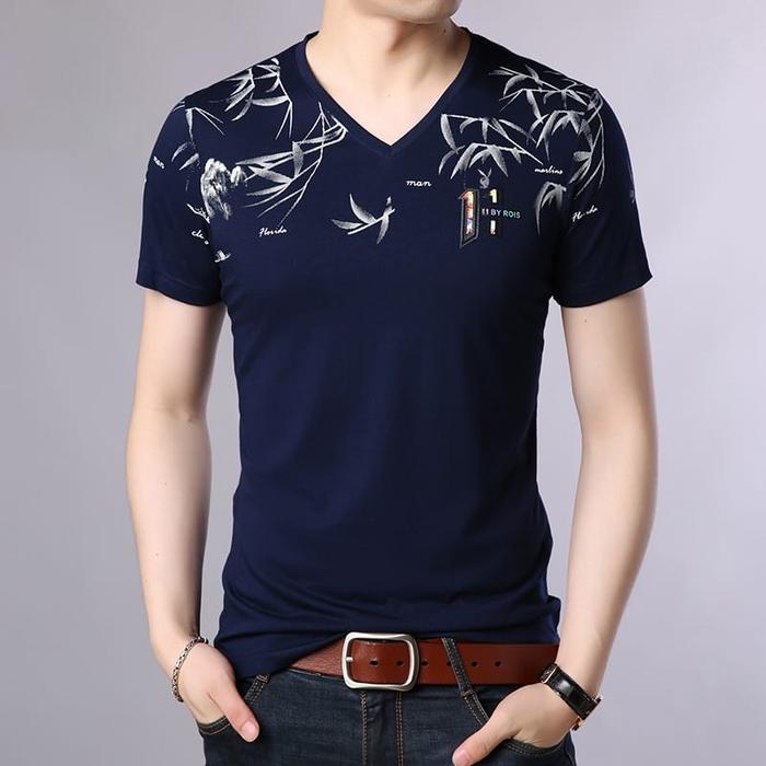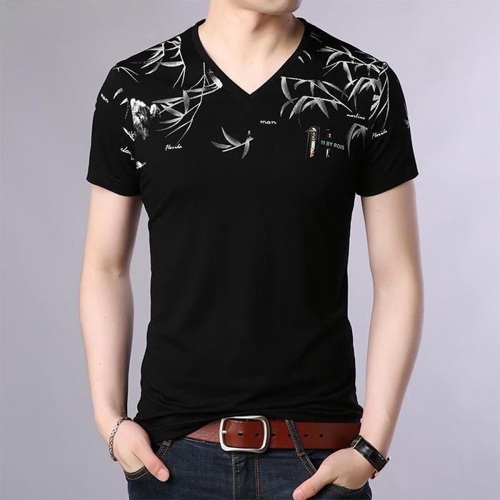 DP 0 CENTRAL -BAJU ATASAN KAOS SPANDEK V NECKLENGAN PENDEK PRIA ROIS - HITAM M-L