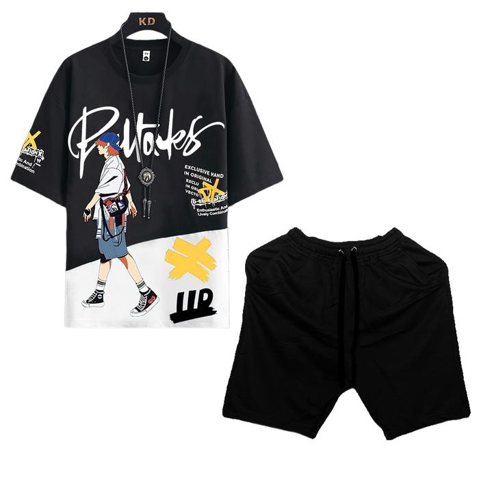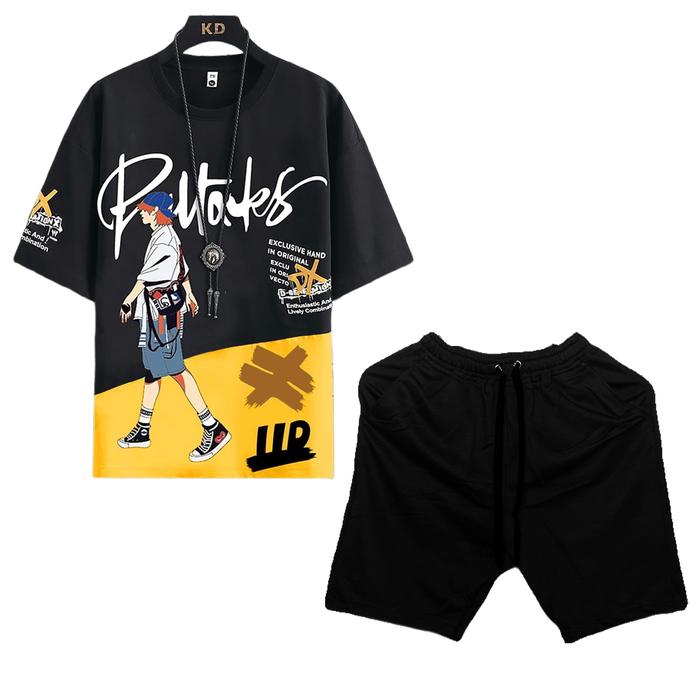 DP 0 CENTRAL-SETELAN ATSAN KAOS DISTRO MOTIF PIRATES DAN CELANA PENDEK PRIA - SET PIRATES HITAM KUNING M-L
