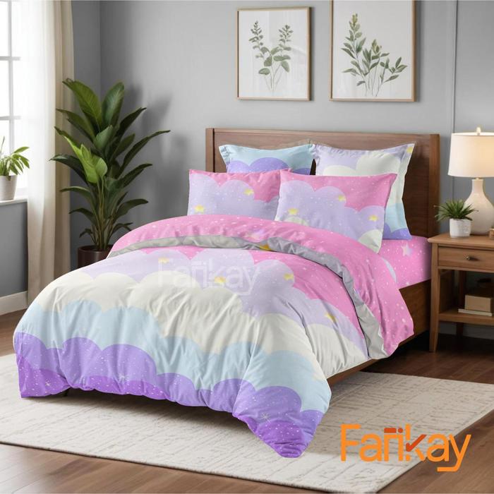 BED COVER SET SPREI CLOUDS GALAXY UKURAN LENGKAP FANKAY BEDCOVER SPREI SARUNG BANTAL SARUNG GULING KAIN 20 100X200