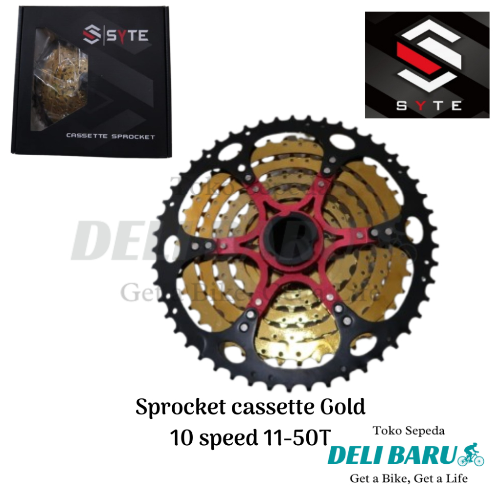 SYTE Sprocket cassette 10 speed gold hitam model slop 11-50T sepeda MTB federal