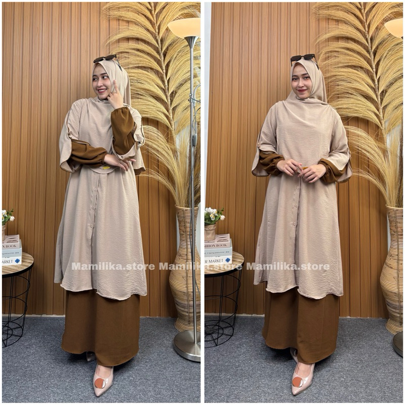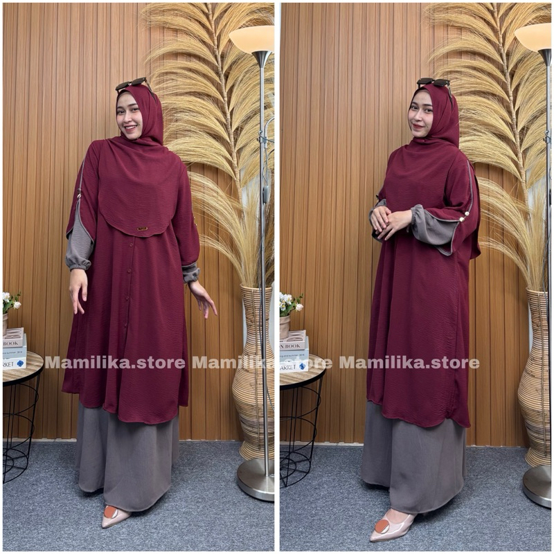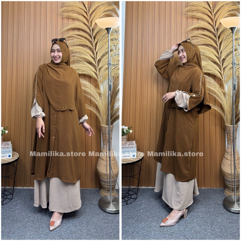 Noura Set Tunik Hijab Pashmina 3in1 Rok + Tunik + Kerudung Syari
