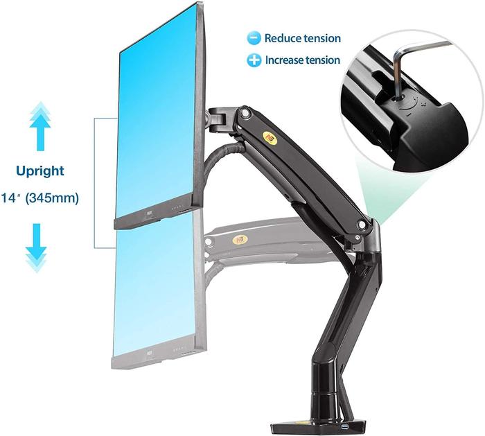 Bracket TV Bracket Monitor 22 24 27 29 32 34 35 inch, Gas Spring Full Motions Mount with USB Port