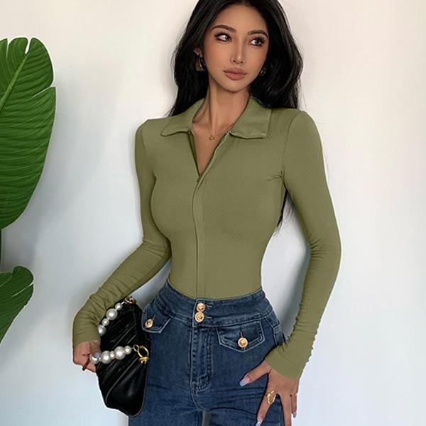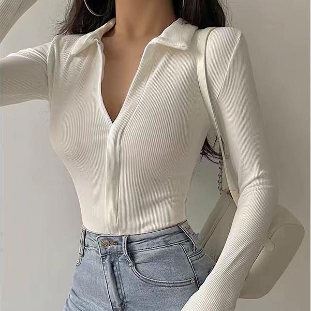 Baju Kemeja Wanita/Rok Wanita Premium Zipper Long Sleeve Bodysuit 7030 (S/M/L/XL)