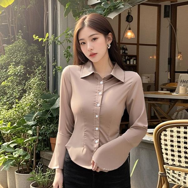 Baju Kemeja Wanita/Rok Wanita Kemeja stretch wanita Missshine Magnet Shirt dengan kerah