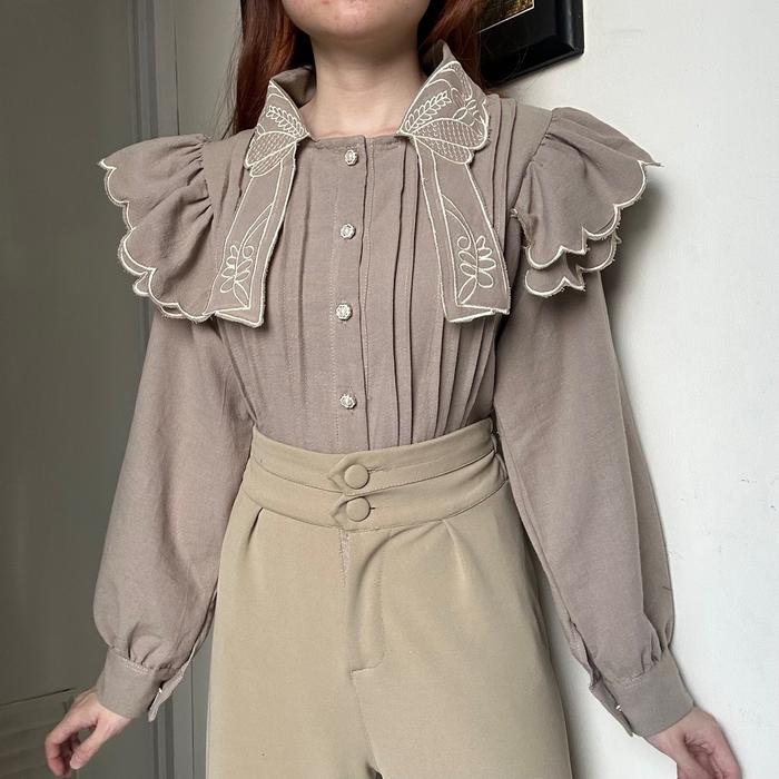 Baju Kemeja Wanita/Rok Wanita Sevilla Top atasan kemeja blouse wanita linen bordir korean style by