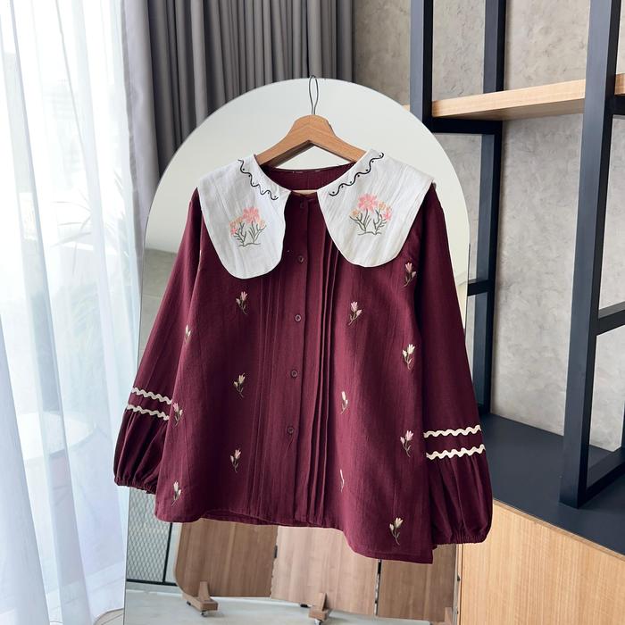 Baju Kemeja Wanita/Rok Wanita By.HANA 389 Kemeja Lipit Polos Bordir Atasan Panjang Wanita Baju
