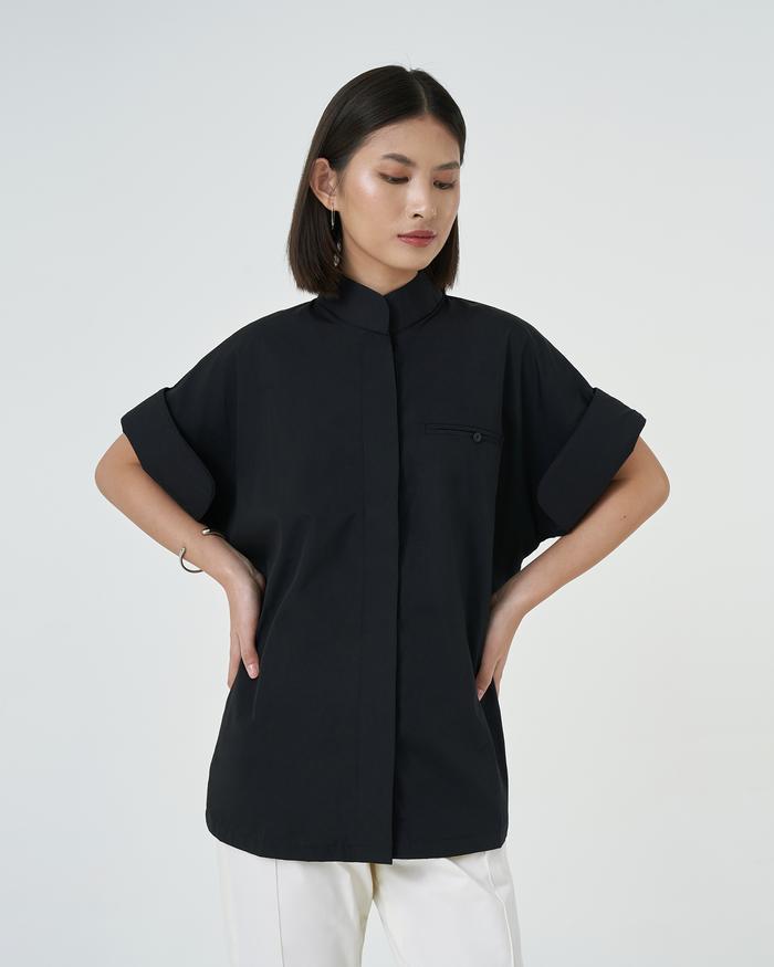 Baju Kemeja Wanita/Rok Wanita Vin Shirt - Standing Collar Shirt - Kemeja Kasual Lengan Pendek