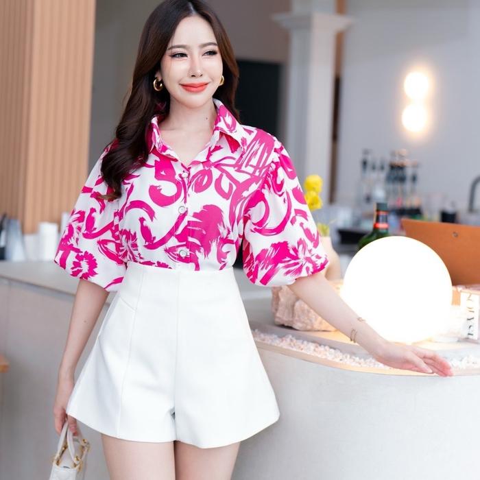 Baju Kemeja Wanita/Rok Wanita KEMEJA SKETCHY COLORFUL PUFF SLEEVE Atasan Wanita Motif Lengan Balon