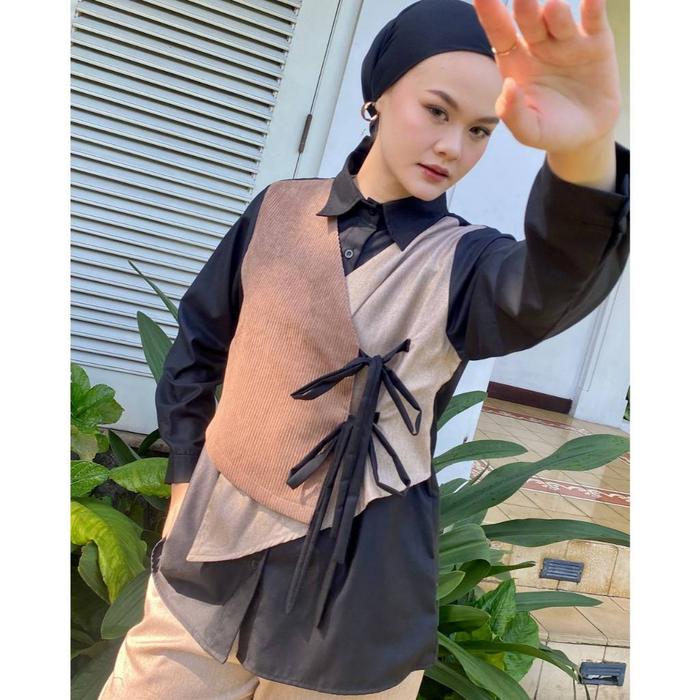 Baju Kemeja Wanita/Rok Wanita Dya id - Atasan kemeja katun wanita Nabila Black and Brown L-3XL
