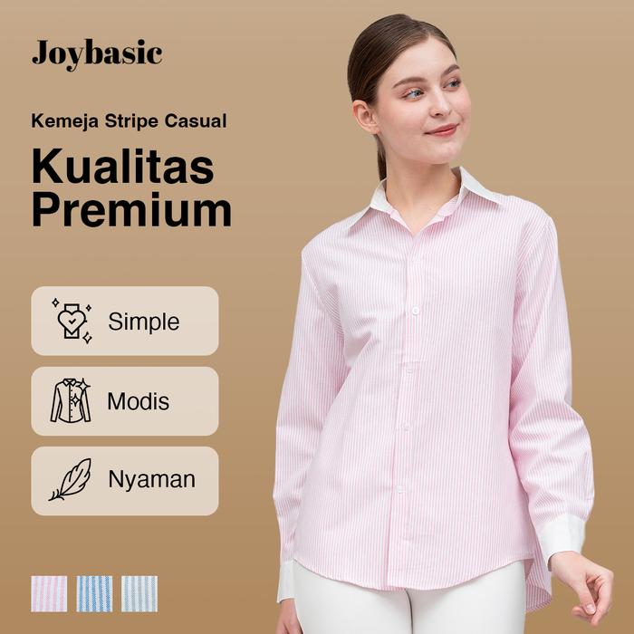 Baju Kemeja Wanita/Rok Wanita Joybasic Kemeja Stripe Casual kualitas Premium Garis