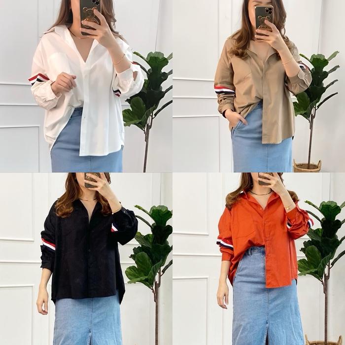 Baju Kemeja Wanita/Rok Wanita KEMEJA WANITA LIST YUMI BIGSIZE KATUN POPLIN OVERSIZED LD 130CM