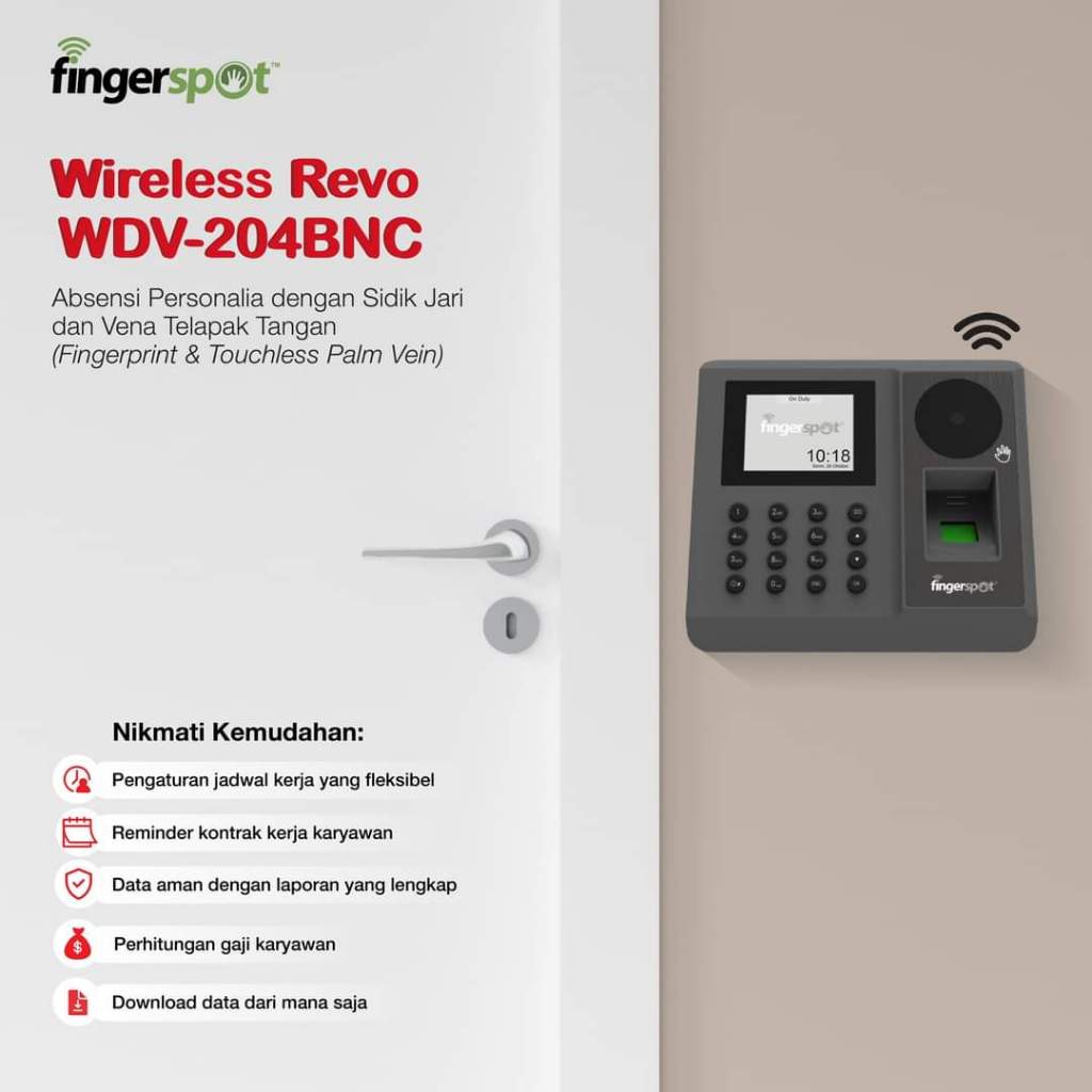 Fingerspot Revo WDV 204 BNC - Mesin Absensi Telapak Sidik Jari WiFi