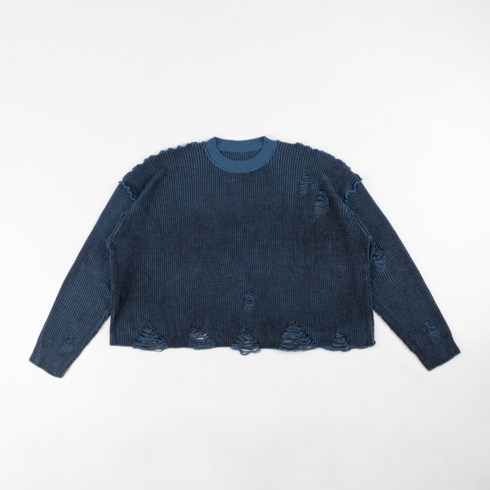 Hierarchy Studios Chroma - Distressed Blue Flux Oversized Knit Sweater
