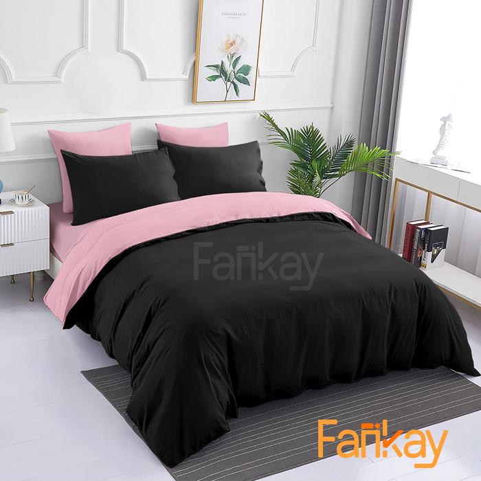 BED COVER SET SPREI BLACK PINK UKURAN LENGKAP FANKAY BEDCOVER SPREI SARUNG BANTAL SARUNG GULING 100X200 20