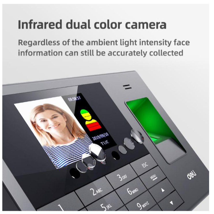 Deli E3765 Mesin Absensi Wajah Sidik Jari Absen Fingerprint USB Face Recognition