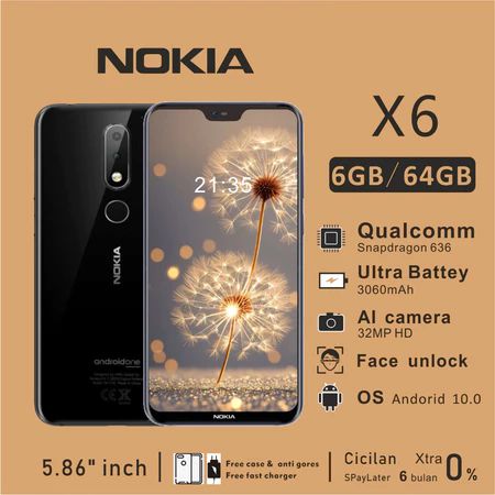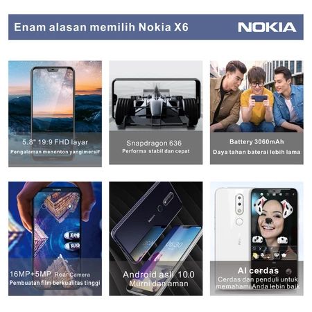 Nokia x6 (6.1plus) ram 6GB+rom64GB dual sim garansi resmi type-c hp murah nokia android android tebaru