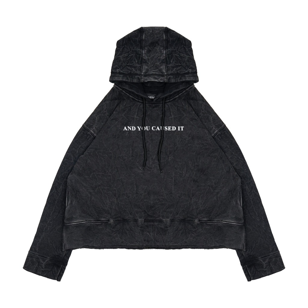 Moxie Hoodie Crop Washed Unfinish Oversize Youth Unisex Bahan Fleece - Black Washed