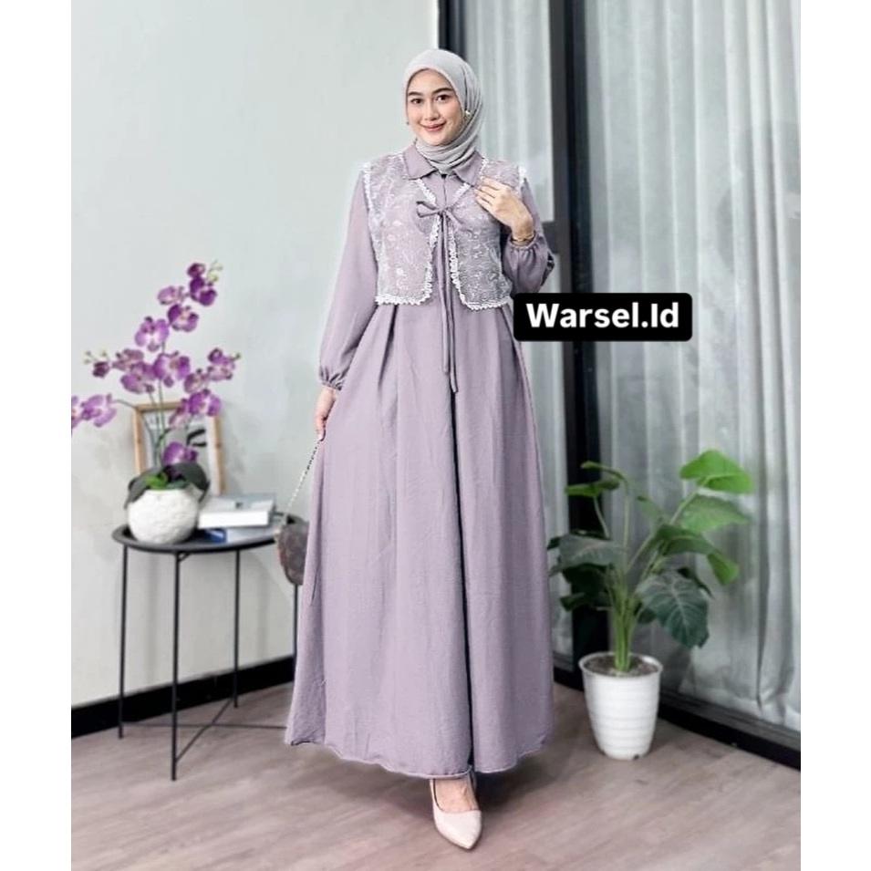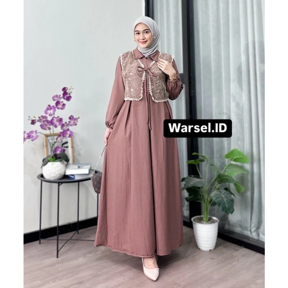 Bella Dress Brukat Kondangan Terbaru Premium Gamis Pesta Mewah Elegan Burgundy Wanita Ceruty Babydol