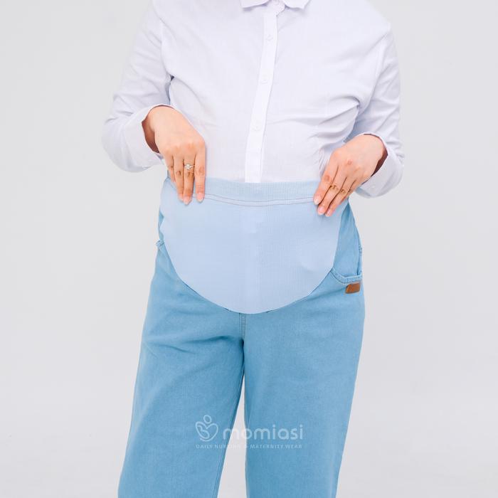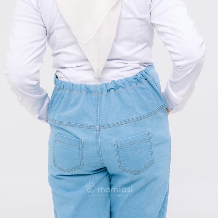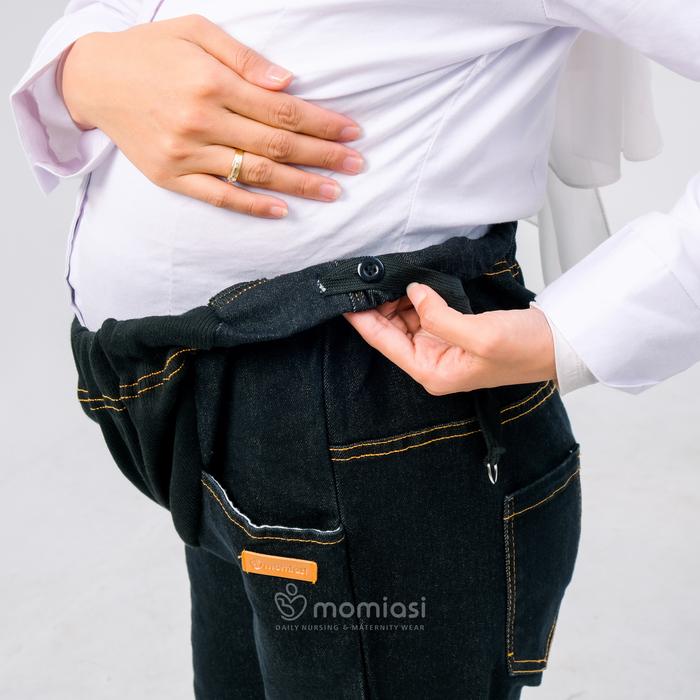 MOMIASI CELANA HAMIL JEANS DENIM STRECH JEANS BLACK STANDAR ( L )