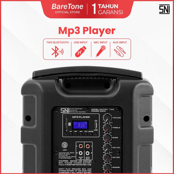 Speaker Portable 10 inch Baretone MAX 10 C / MAX 10C / MAX10C Bluetoth