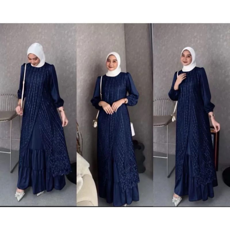 Olivia Dress Gamis Brokat Kondangan Terbaru Bahan Velvet Mix Brukat Tille Akar Gamis Pesta Mewah