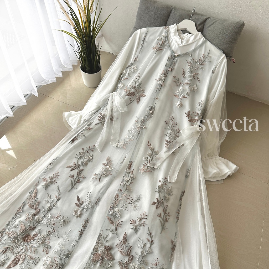 SWEETA | Gamis Lace Maxi 2 in 1 Tile | Brokat Full Bordir | LD 105 cm | Pakaian Muslim Wanita